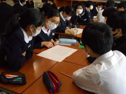 「もし、弟が赤色と赤色だったら・・・」、「きっと○○だよ!」など、様々な考えが飛び交っていました。班での学び愛を終え、クラス全体で学び愛をしているクラスもありました。