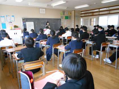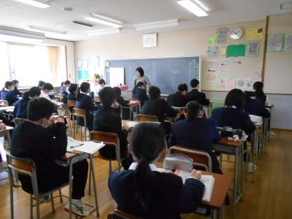 英語の授業では、担当の先生の自己紹介を聴き取り、発表していました。