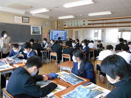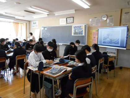 美術の授業では、北斎やゴッホの絵を見て、何が見えるか考えを出し合いました。