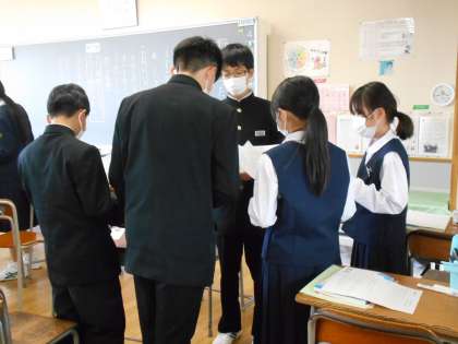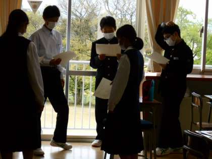 国語の授業では、詩「野原をうたう」が伝えようとしていることを、どんなふうに表現してたらよいのか、グループで相談しながら朗読の練習を進めました。