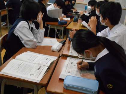 どのようにしたら必要なことを相手に伝えられるのか、考えながらスピーチをしていました。14歳の挑戦や、実際の生活の場で、「話し方」はとても大切です.会話を通して、よりよい人間関係をつくることにもつながりますね。