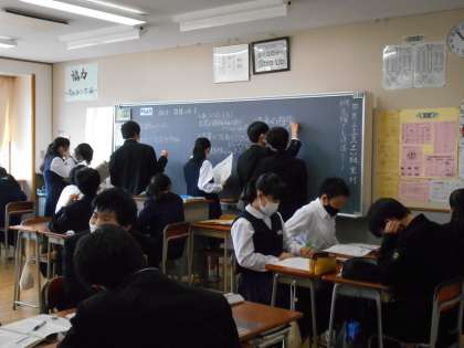 「店長がおいでになられる。」や「ご飯をいただいてください。」などの言い方を、正しく敬語で伝えるとどのようになるだろう・・・など、班で話し合っているクラスもありました。