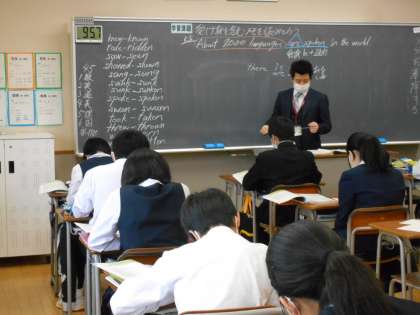 英語の授業では、受け身を含むメモを読みとっているクラスもありました。