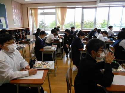 技術の授業では、身の回りにある木材製品を60個以上見つけることに取り組んでおり、なかなか難しい様子でした。