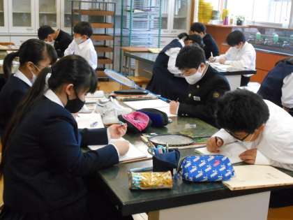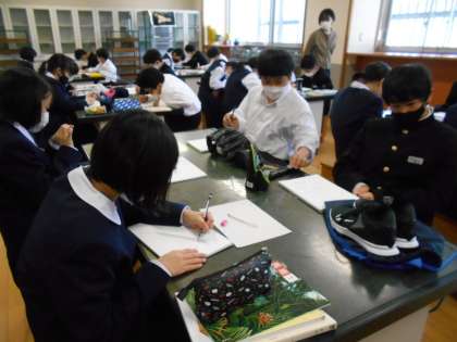 美術の授業では、大切にしたいポイントを決めて、デッサンをしました。