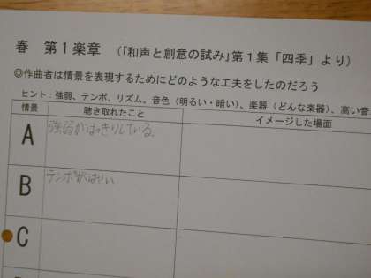 音楽の授業では、音楽から情景をイメージすることに取り組みました。