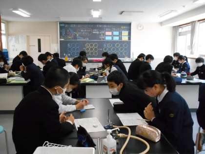 理科の授業では、鉄と硫黄は結びつくのか、実験を通して考えました。