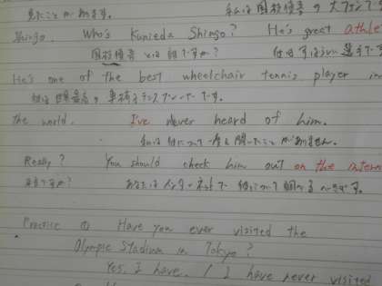 英語の授業では、現在完了を用いて、相手に経験を尋ねることに取り組みました。