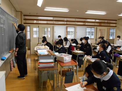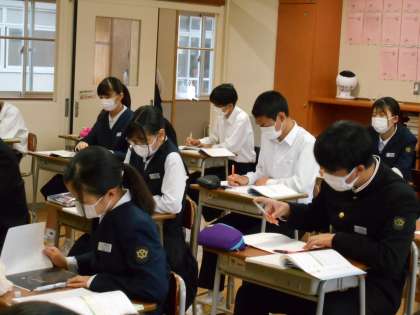 数学の授業では、乗法公式を使って因数分解をすることに取り組みました。