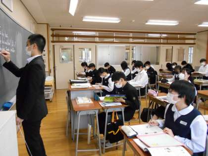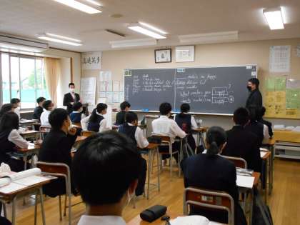 英語の授業では、「What makes you happy?」を使って問答できるように、ALTの先生とのやりとりを交えながら取り組みました。
