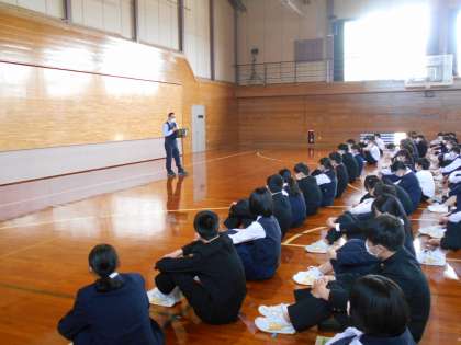 明日からの修学旅行に向けて、出発式を行いました。代表生徒の挨拶、引率してくださる先生方の紹介、校長先生のお話がありました。修学旅行に行けることへの感謝の気持ちを忘れず、充実した活動になるよう1人1人がよく考えて行動しましよう。たくさん学び、楽しい思い出をつくってきましょう。