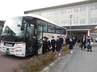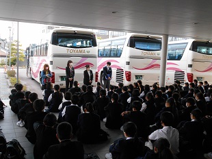 6:15という早い時間でしたが、3年生は元気に集合しました。班長の人員点呼、担任による健康観察をして、出発の時を待ちました。今日から始まる3日間の旅が楽しみで仕方がない様子が伝わってきました。お世話になる添乗員の方や、見送りの先生方に挨拶をした後、予定時刻の6:30に学校を出発しました。朝早くから送り出してくださった保護者の皆様、ありがとうございました。