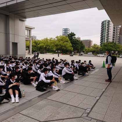 広島平和記念資料館での学習を終えました。資料館の中では、悲惨な被害の様子を肌で感じ、直視できない資料もあったようです。これまでの平和学習のまとめの時間でしたが、事後学習でも、改めて平和の大切さを考えてほしいと思います。