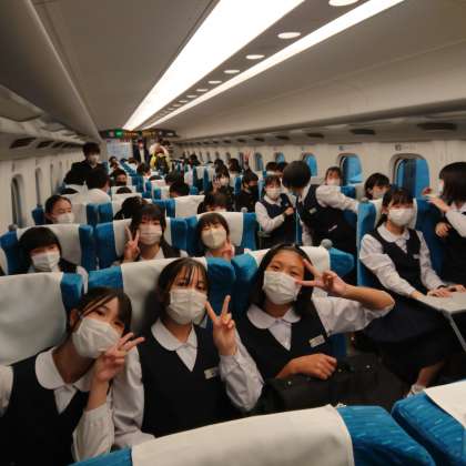 新幹線に乗りました。新幹線では、寝てしまう人が多いかと思いましたが、みんな元気いっぱいでした。