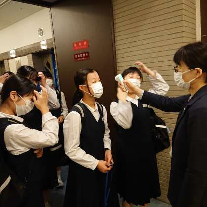 食事会場に入る前には、検温と手指消毒をして入りました。みんな元気です。