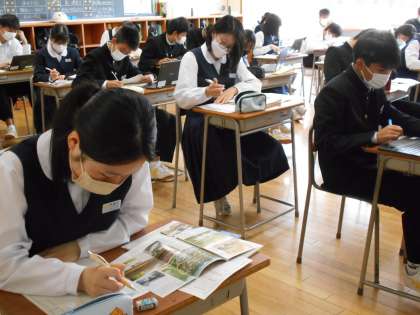 先週行ってきた修学旅行のまとめの時間で、Chromebookや現地でもらってきた資料を使って情報の確認をしながら、新聞作りを進めました。