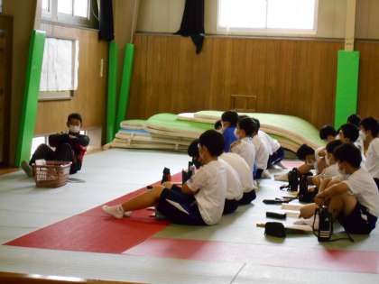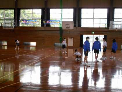 保健体育の授業では、女子はハンドボール投げの測定、男子はスポーツテストの注意点を確認していました。