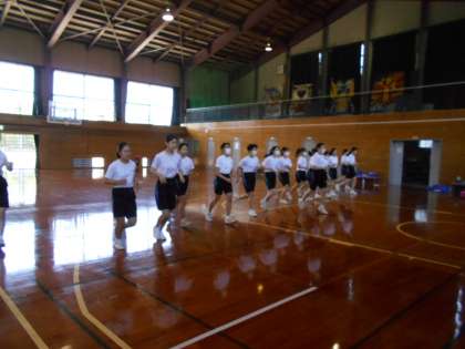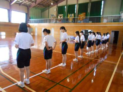 保健体育の授業では、男女ともに、マスクを取り、半袖になるなど、熱中症対策をしてシャトルランに取り組みました。