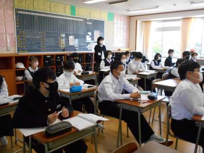 数学の授業では、正負の計算について勉強しました。だいぶ理解は進んでいるようでした。