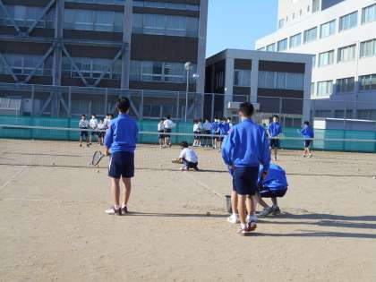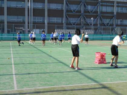 ソフトテニス部では、上級生が球出しをして、レシーブ練習をしていました。このような姿を見ると、とても頼もしく感じ、見ている方もうれしくなります。
