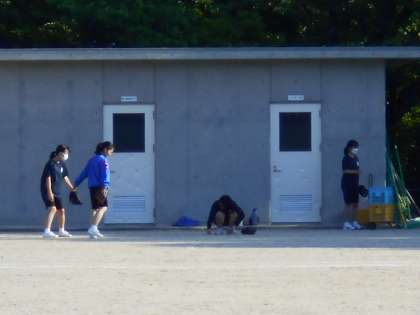 ソフトボール部は、今日は部室前での活動でした。ノックを打ってキャッチする守備練習やキャッチボールをしていました。