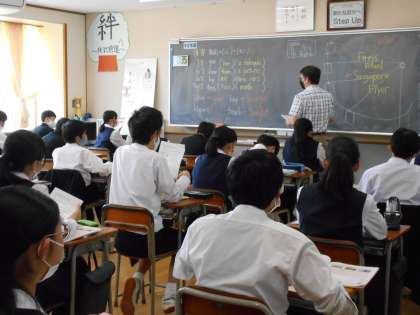 英語の授業では、動詞の次に2つの単語が来る表現について、ALTの先生と勉強しました。
