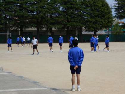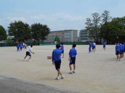 男子保健体育の授業では、グラウンドでハンドボール投げに取り組み、測定しました。
