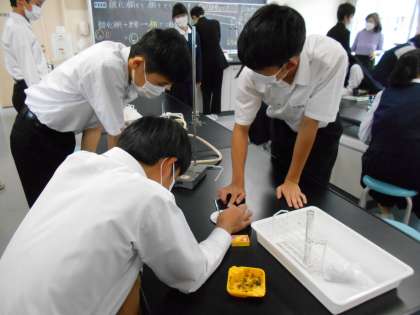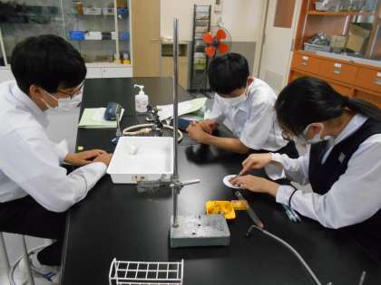 理科の授業では、酸化銅から銅を取り出す実験をしました。とてもきれいに取り出せていました。