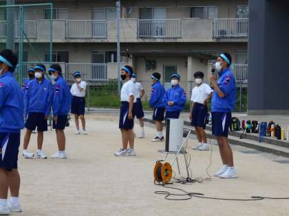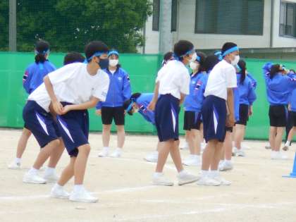 今日から運動会の団別練習が始まりました。リーダーの指示で、団ごとにスムーズに移動し、練習を始めることができました。
