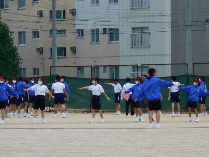 踊りに加えて、隊形移動を各団工夫しています。移動の仕方等を団員に伝え、いかにきれいに集団での演技を見せるかがポイントです。