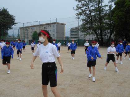 全学年合同の団活動が始まりました。各団3年生の団長を中心に、隊形確認とダンス練習が行われました。写真は、赤鳳団の練習の様子です。
