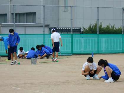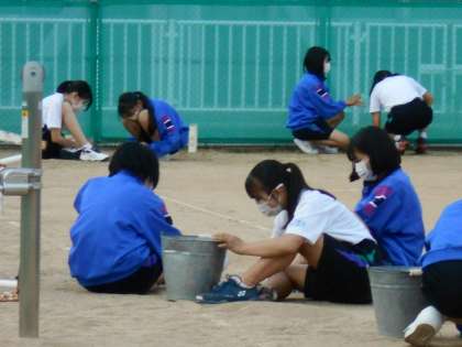 ソフトテニス部は、全員でコート整備をしました。小さな草も取り除き、コートも気持ちもすっきりしました。