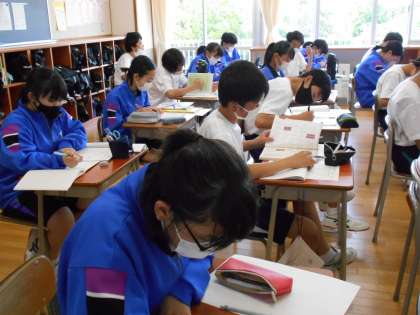 今日の学活は、初めての中間評価に向けて、学習の予定を立てました。何の教科を、いつ、何を使って取り組むのか、予定を立てることで、勉強しなければならない範囲が具体的につかめたようです。