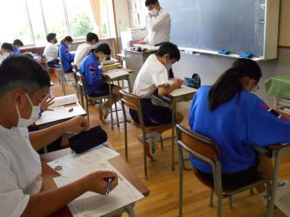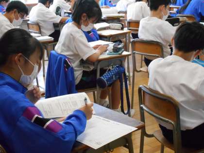 今日の学活は、初めての中間評価に向けて、学習の予定を立てました。何の教科を、いつ、何を使って取り組むのか、予定を立てることで、勉強しなければならない範囲が具体的につかめたようです。