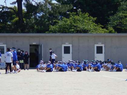 綱引きは、集合してルールの確認をしました。綱引きは、どのように並ぶか、どんな合図でどんな姿勢で引くか、団ごとの作戦が勝敗を分けます。これからの戦略が大切です。
