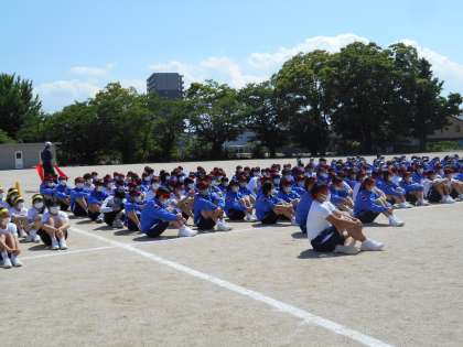 練習の終わりの様子です。話をする人の方にしっかり体を向けて聞く様子は、運動会をよりよいものにしようという真剣さが感じられました。