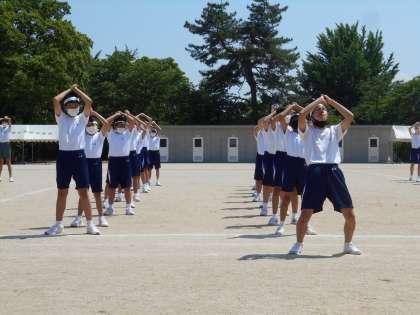 各団、グラウンドのセンターを使って練習をしました。互いの間隔、移動の仕方、ダンスの確認、声の出し方等、それぞれポイントを意識して練習を進めました。