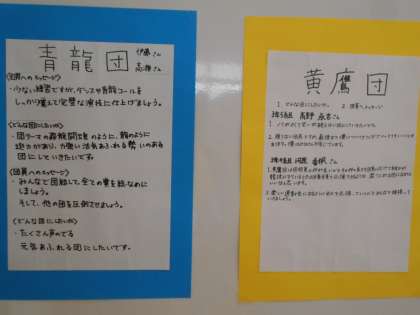 広報委員会の企画として、団長にインタビューしたものが生徒玄関エコスペースに掲示されていました。各団の団長が、この運動会にかける思いを語ったものです。広報委員が代筆して、掲示しました。