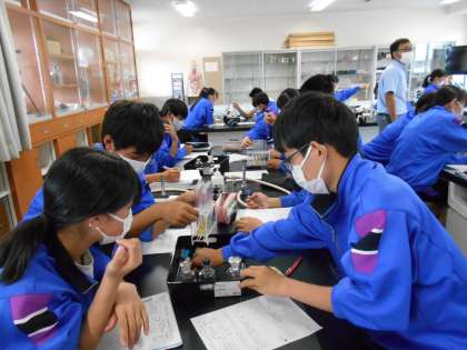 理科の授業では、酸とアルカリを混ぜ合わせたときの変化について、実験を通して調べました。