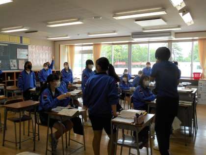女子の保健体育は、保健分野でした。感染症の広がり、また、その対策としてどんなことが考えられるか、みんなで意見を出し合いました。