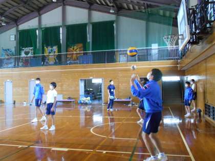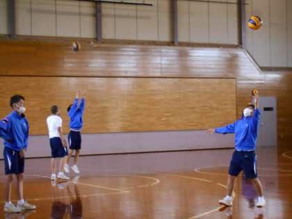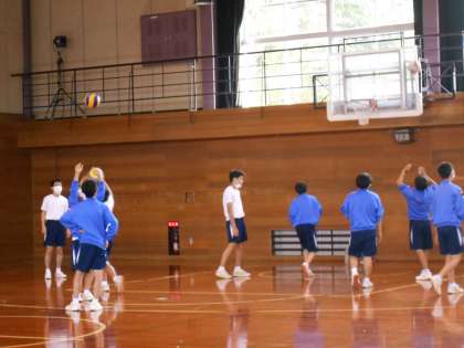男子の保健体育の授業ではバレーボールに取り組んでおり、各自、直上のオーバーハンドパスの練習をしました。