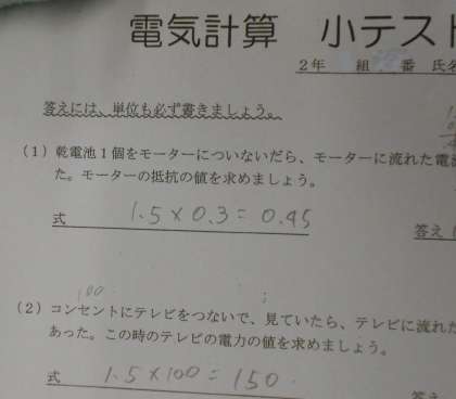 技術の授業では、電気に関する計算テストを行っており、慎重に確かめをしている様子が見られました。