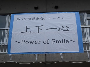 昨夜から降り始めた雨もようやく上がりました。令和2年度に改修工事を終えたグラウンド。コンディションの回復を待ちながら、生徒たちは準備万端で教室で過ごしていました。予定よりも約2時間遅れて、第76回運動会での開会です。