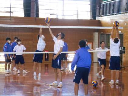 男子保健体育の授業は、バレーボールでした。今日は、スパイクを打つことに集中して、練習をしました。