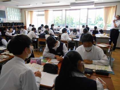 社会の授業では、日本の人口分布や人口構成の変化を知るとともに、人口が減らない方法についてグループごとに考えました。