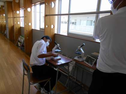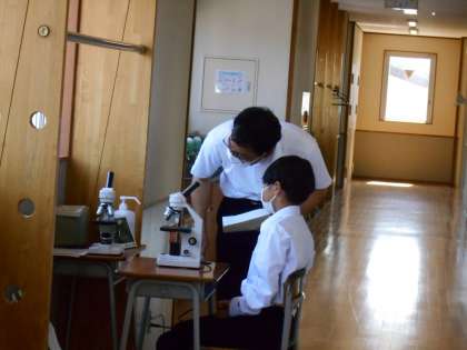 理科の授業では、顕微鏡の使い方の実技テストを、一人ずつ順番に行い、手順等を改めて確認する機会にできました。