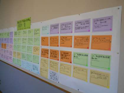 7月4日から5日間実施される「社会に学ぶ『14歳の挑戦』」に向けて、いろいろな活動が進められています。廊下には、71事業所の場所を表す地図と事業所名や仕事内容が書かれたカードが掲示されています。6月には事業所への事前訪問も予定されており、2年生はいよいよ始まるのだなと感じていることと思います。