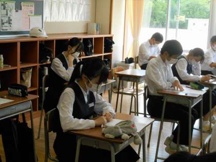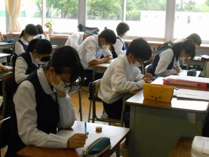 英語の授業では、これまでの復習を、まとめのプリント等を使って進めました。