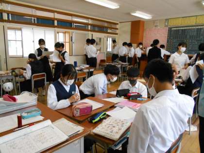 国語の授業では、各自が書いた「握手」の書評を読み合い、級友の意見を知ることで、自分の考えをさらに深めました。