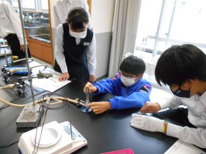 理科の授業では、金属を加熱して酸化させると質量はいつまで増え続けるのか、実験を通して調べました。